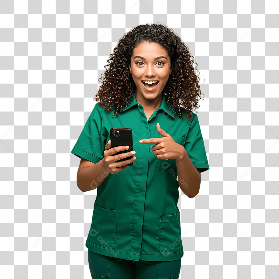 Jovem Mulher com Celular nas Mãos PNG Transparente