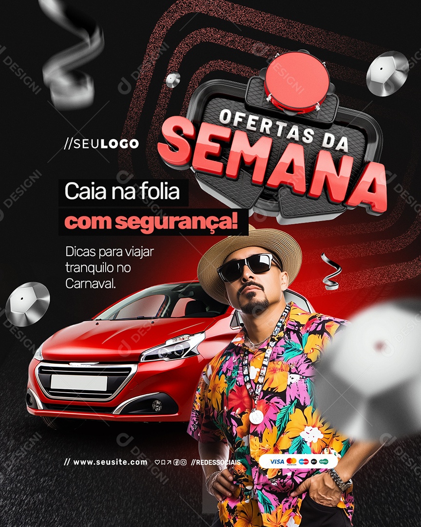 Loja de Pneus Ofertas Da Semana Caia na Folia com Segurança Social Media PSD Editável