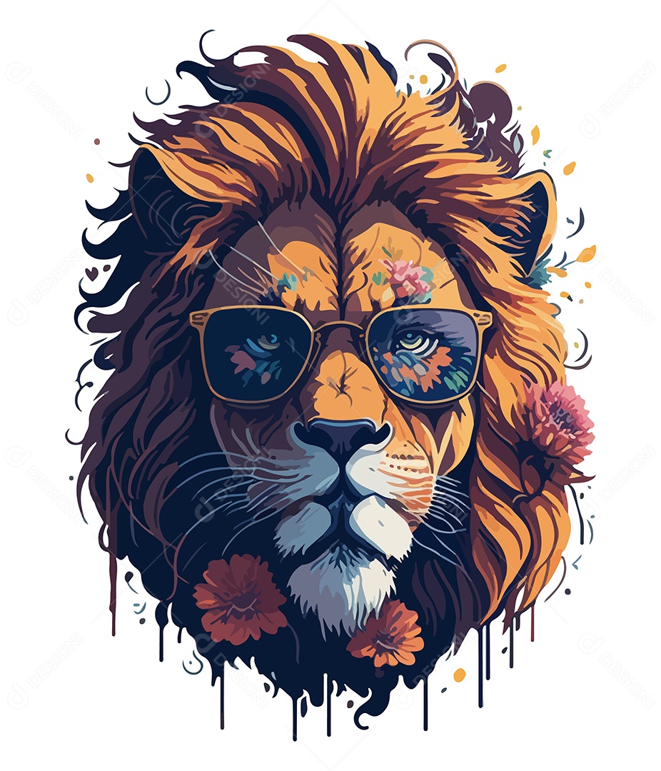 Ilustração 3D Leão De Óculos Com Flores EPS Editável