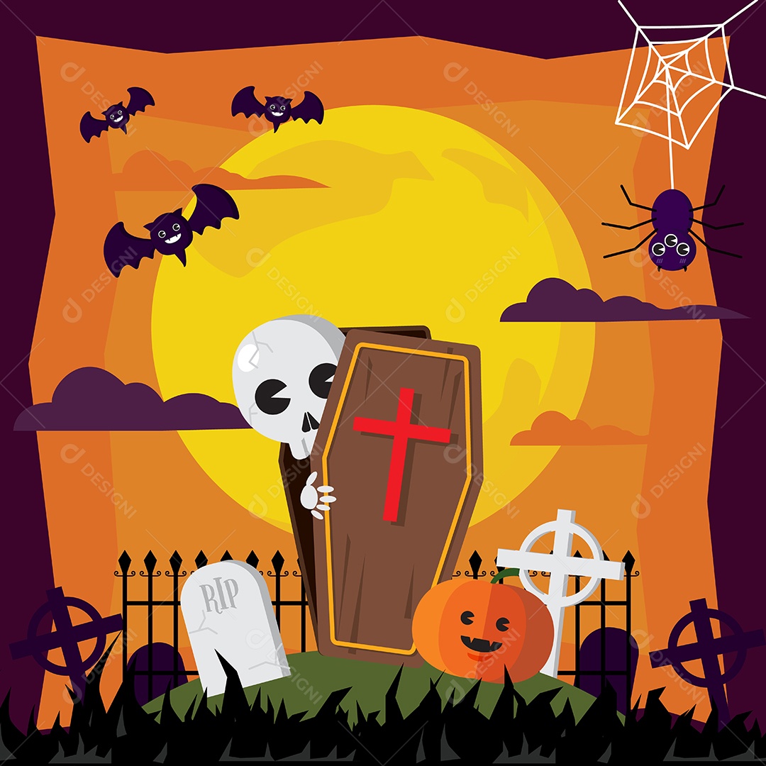 Fantasma de Halloween e Cemitério Em Ilustrações de Lua Vetor EPS