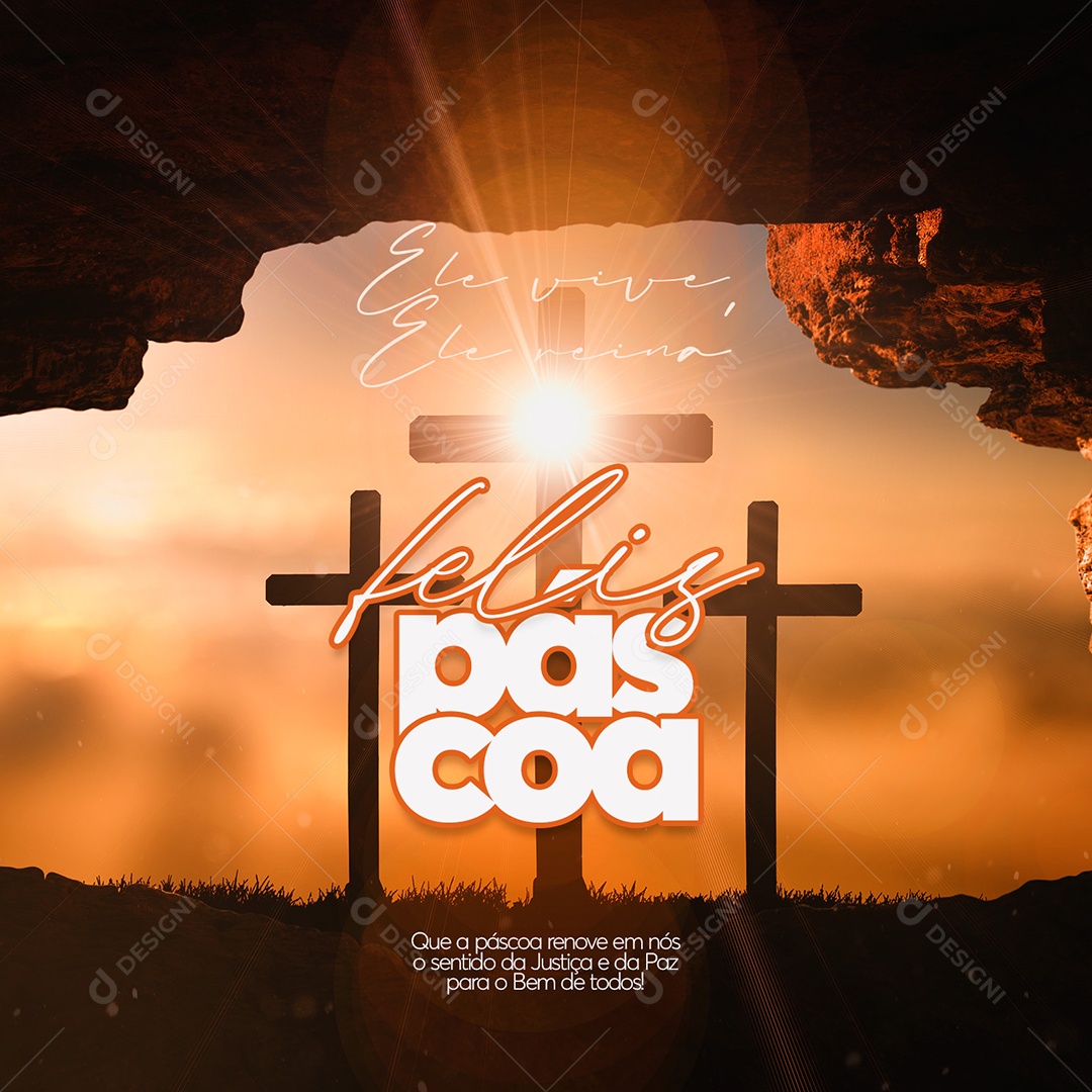 Feliz Páscoa Que a Páscoa Renove em Nós o Sentido da Justiça e da Paz Para o Bem de Todos Social Media PSD Editável