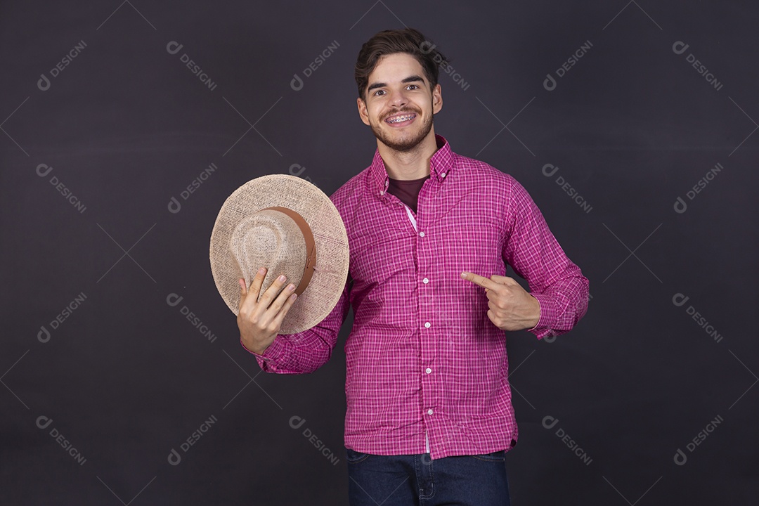 Homem jovem barbudo usando chapéu sobre fundo isolado