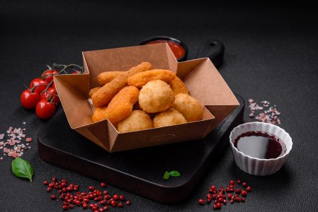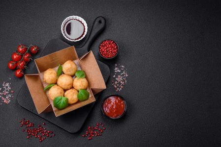 Deliciosos bolinhos fritos sobre a mesa