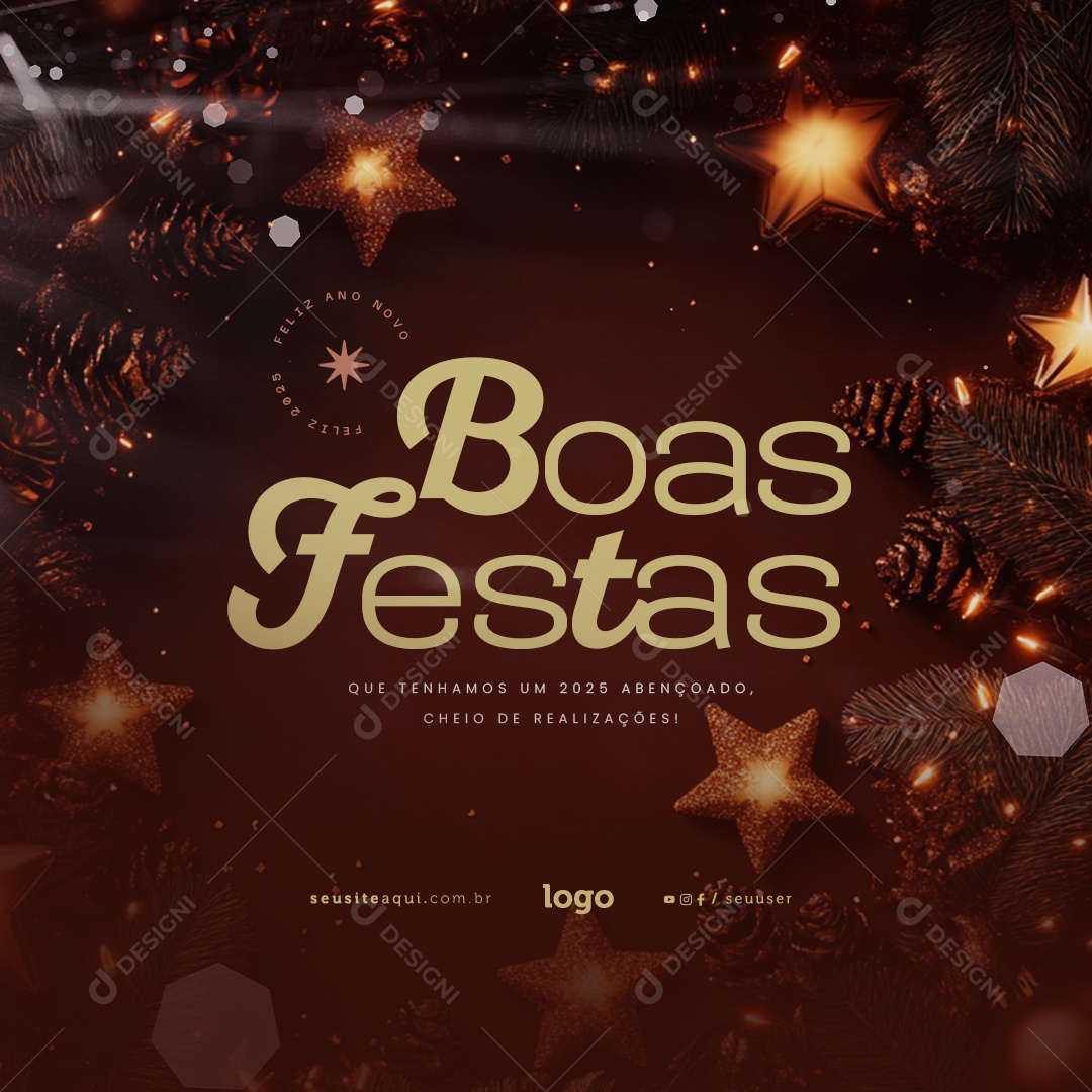 Boas Festas Feliz Natal e Feliz Ano Novo Social Media PSD Editável