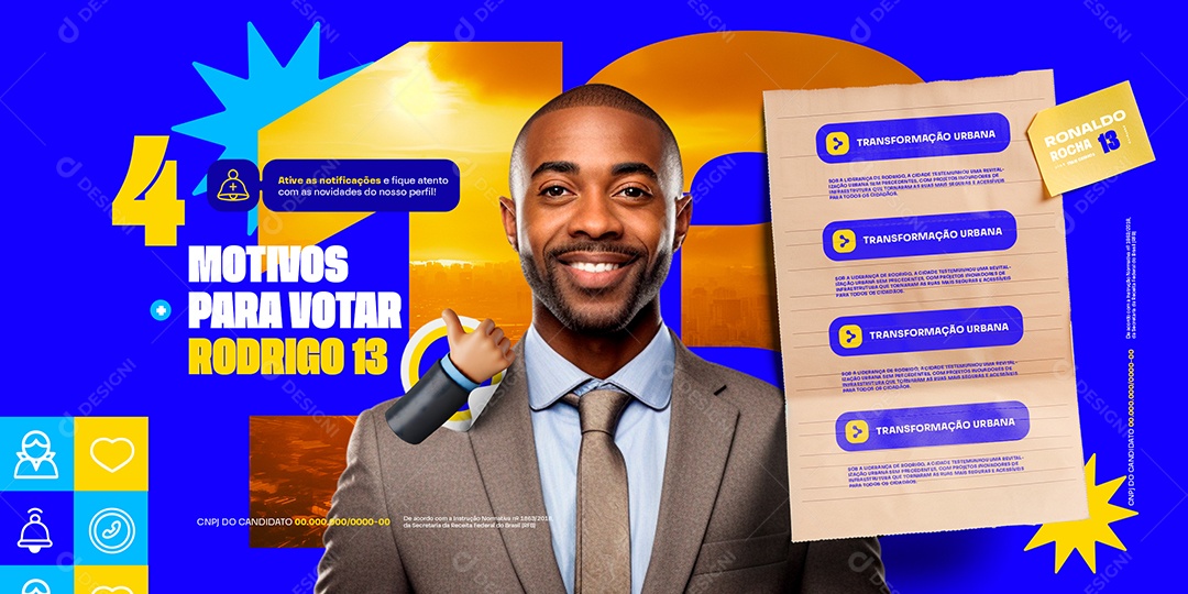 Carrossel Política Eleição 4 Motivos para Votar Rodrigo 13 Social Media PSD Editável