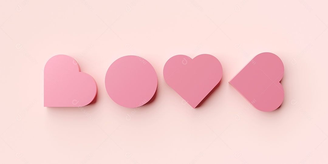 ilustração 3d da forma do coração arranjada à palavra AMOR, posição...
