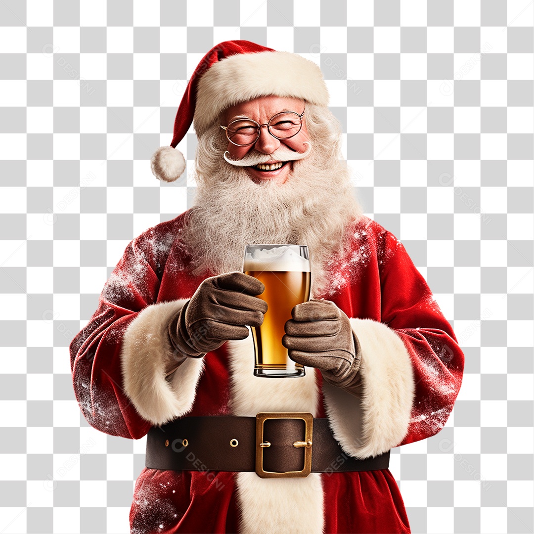 Papai Noel Segurando Copo de Cerveja PNG Transparente