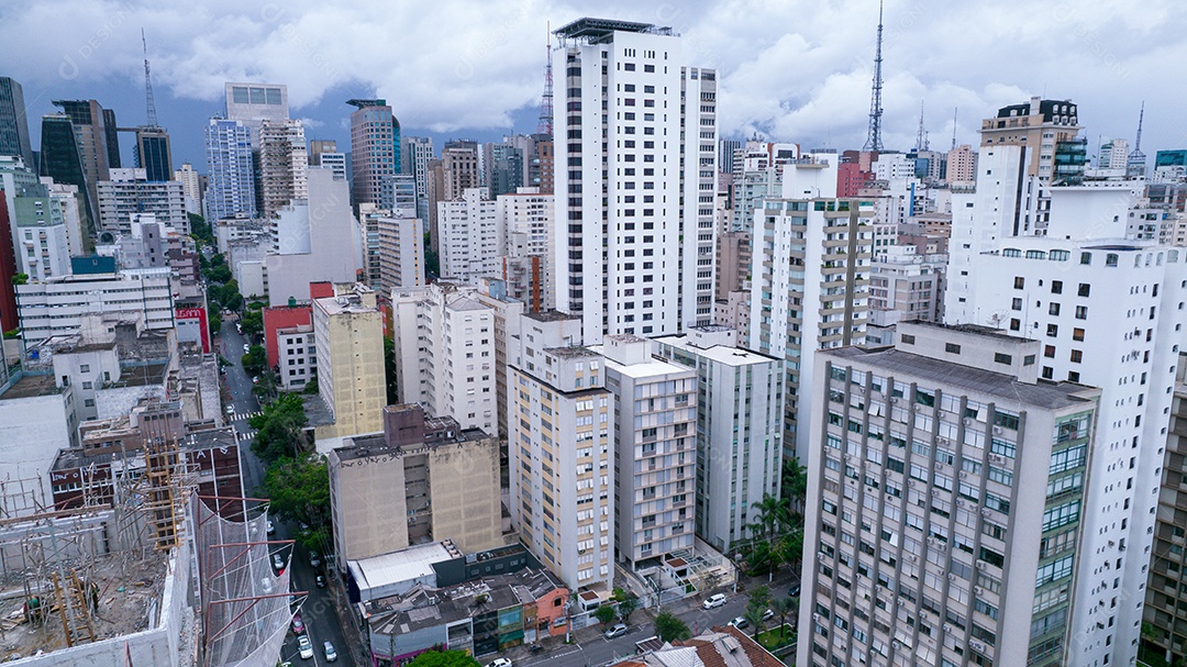 Muitos edifícios no bairro Jardins em São Paulo, Brasil. Edifícios residenciais