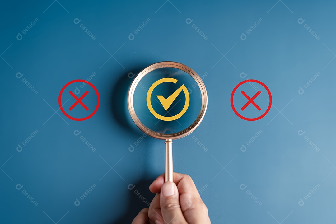 Empresário segurando o foco da lupa para corrigir o ícone que entre...