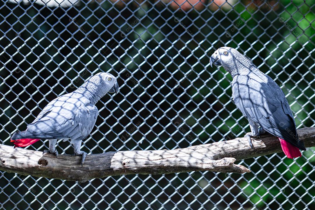 Fotos Casal de papagaios do Congo (Psittacus erithacus) no aviário ...