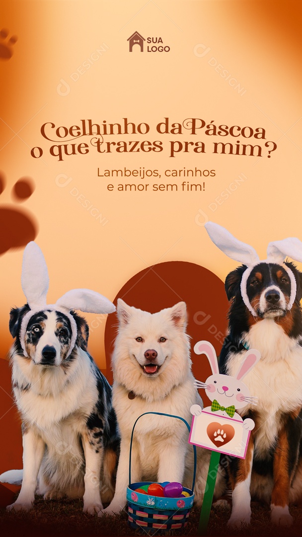 Story Coelhinho da Páscoa o Que Trazes Pra Mim? Lambeijos, Carinhos e Amor Sem Fim Social Media PSD Editável
