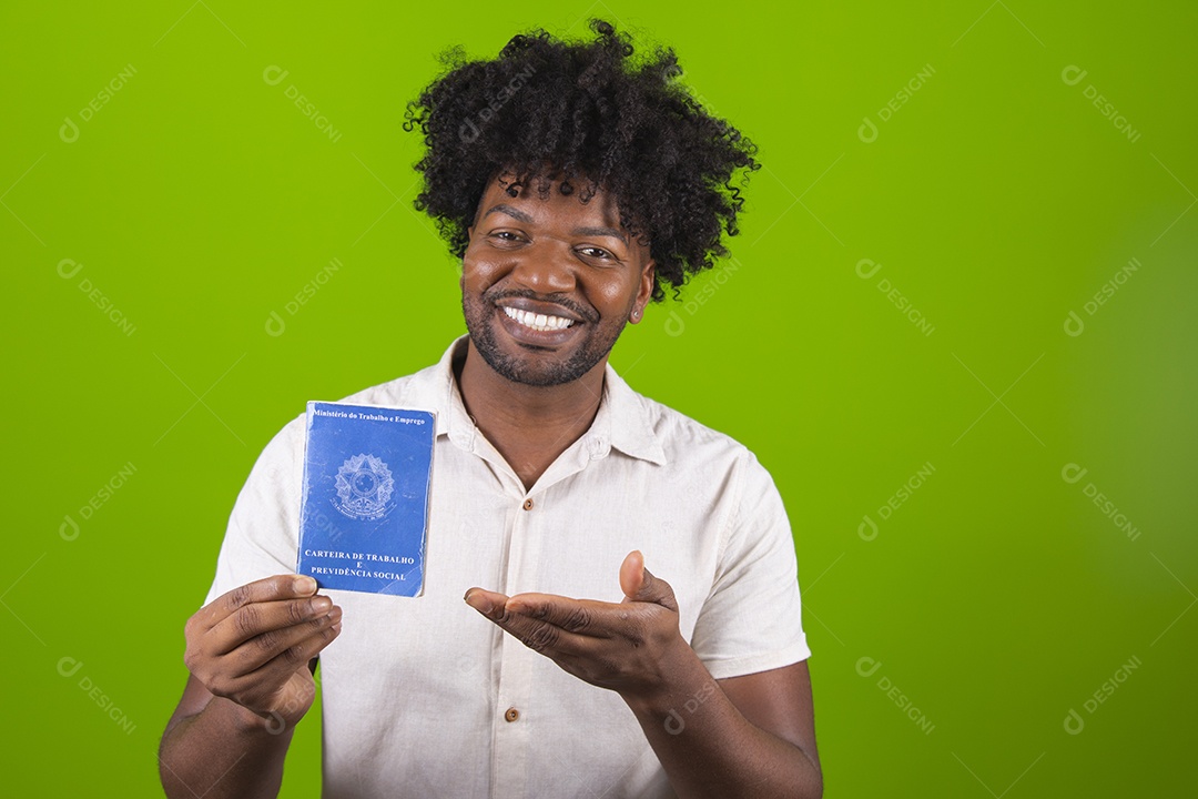 Homem jovem garoto negro segurando carteira de trabalho