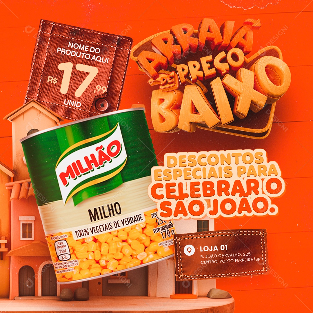 Supermercado Arraiá de Preço Baixo Milho Verde Social Media PSD Editável