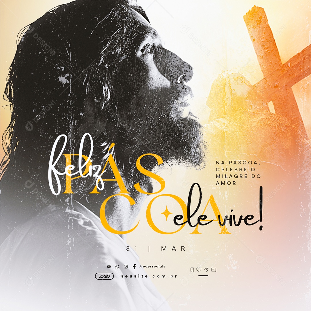 Feliz Páscoa 31 de Março na Páscoa Celebre o Milagre do Amor Social Media PSD Editável