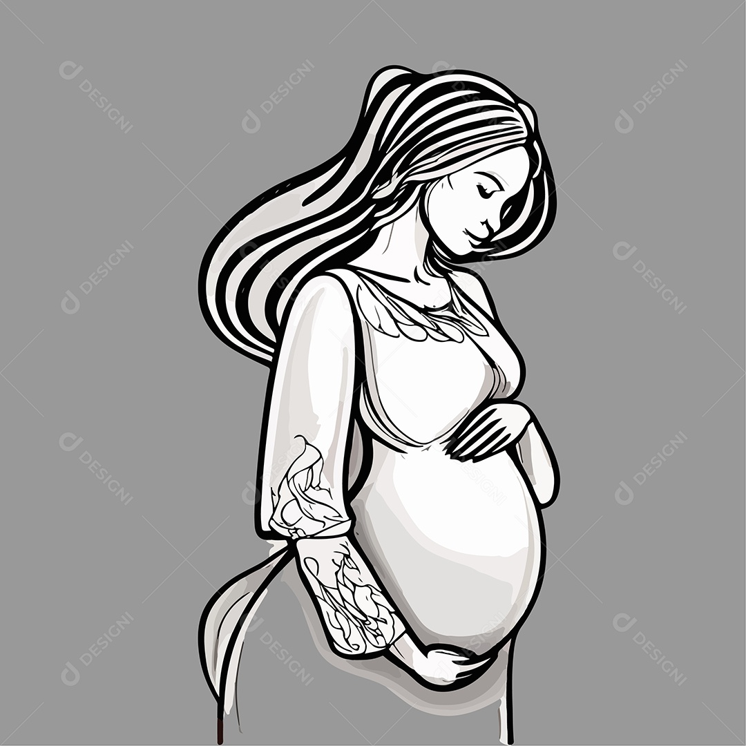 Desenho De Mulher Grávida Vetor Do Dia Das Mães EPS