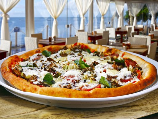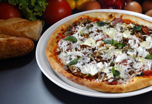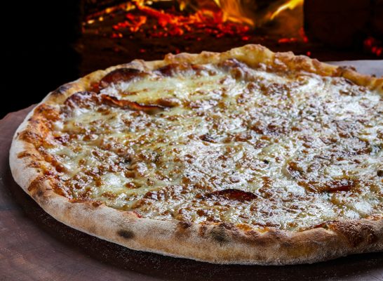 Pizza de quatro queijo com vinho