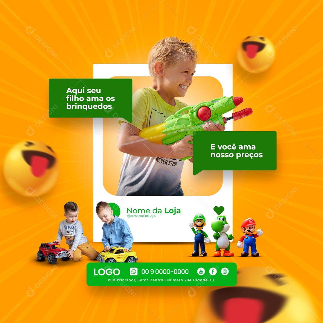 Aqui seu Filho Ama os Brinquedos Loja Infantil Social Media PSD Edi...