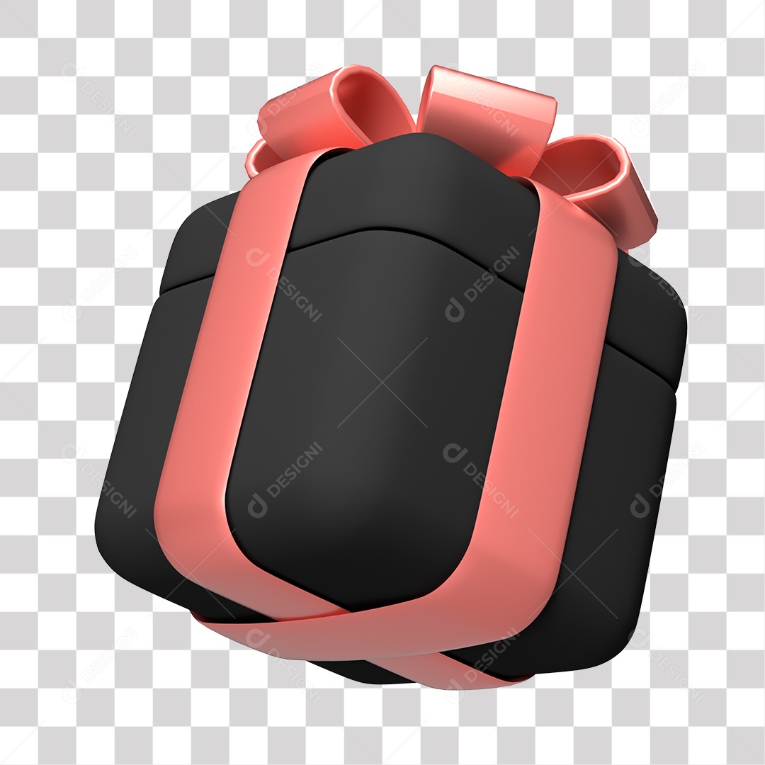 Caixa de Presente Preta Elemento 3D PNG Transparente