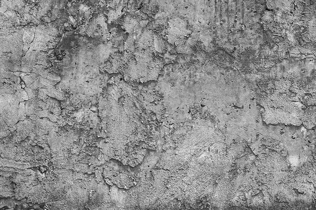 Velho muro de concreto em preto e branco, parede de cimento, parede quebrada, textura de fundo
