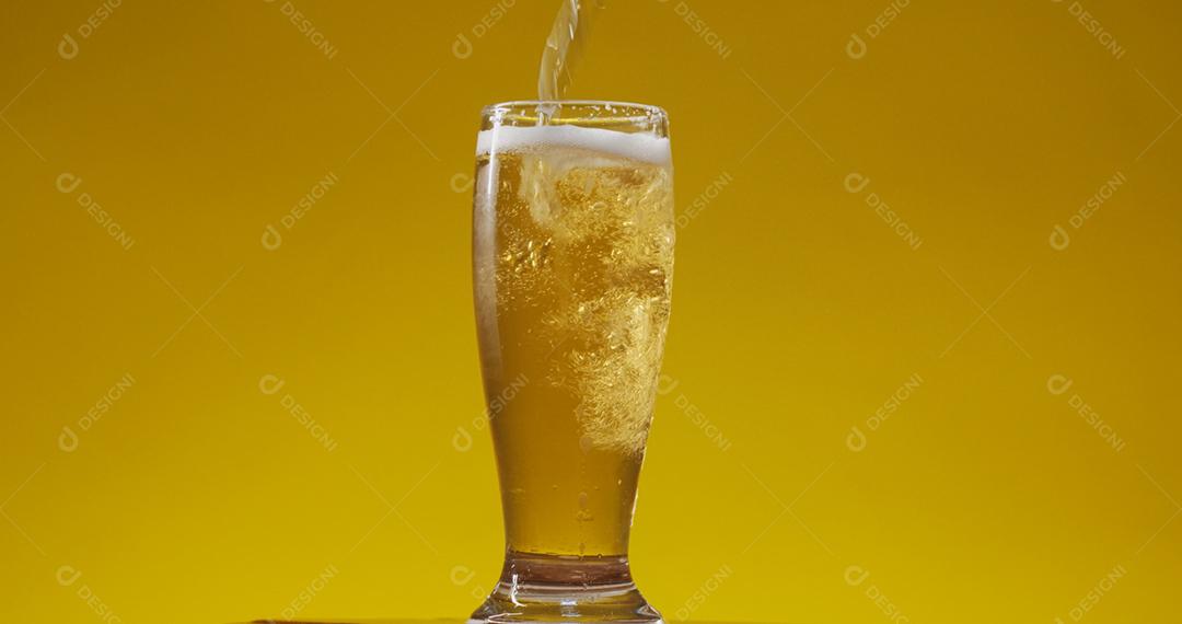 Cold Light Beer em um copo com gotas de água. Cerveja artesanal de ...