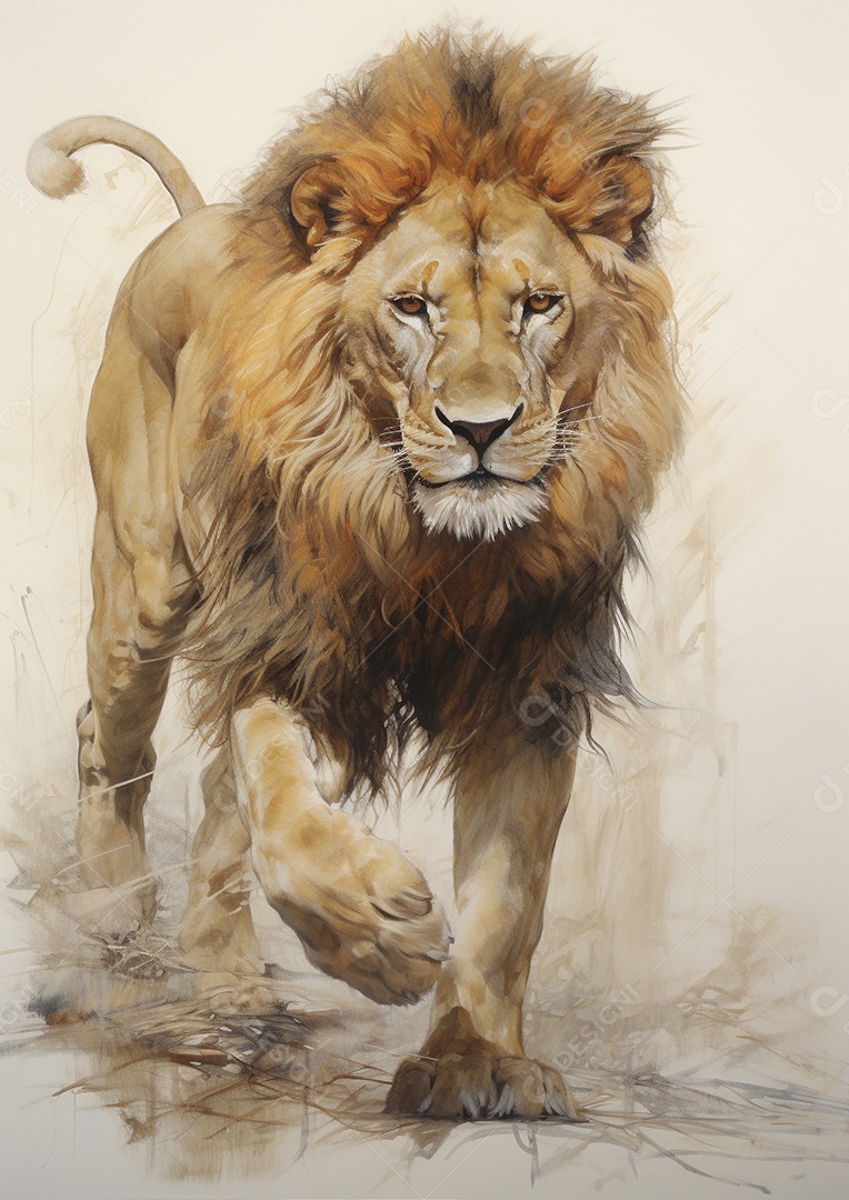 Desenho de um Leão andando por uma tela