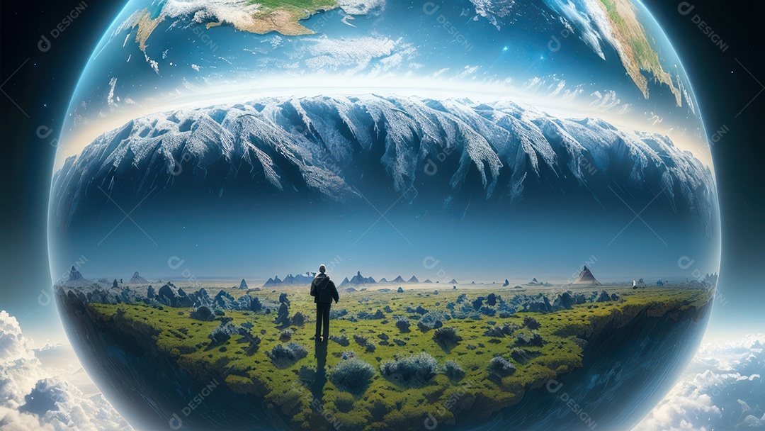 Imagem realista de pessoa caminhando sobre lindo lugar.