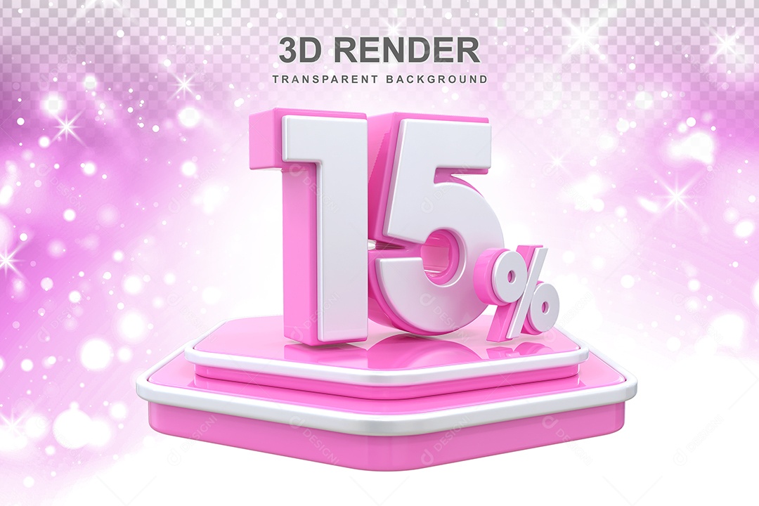 Elemento 3D Pódio de Número 15% Rosa para Composição PSD