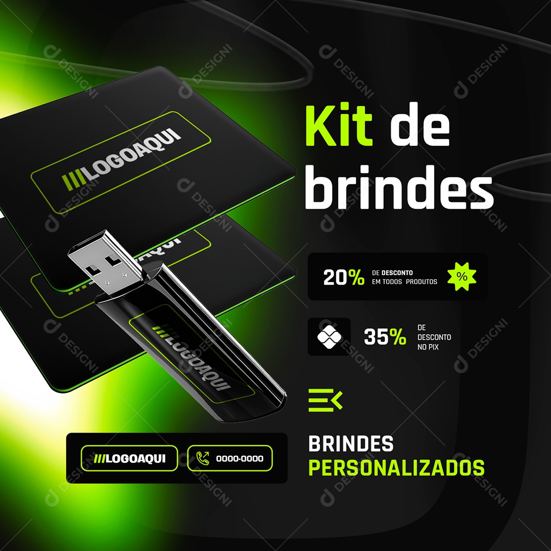 Brindes Kit de Pendrives Personalizados Social Media PSD Editável