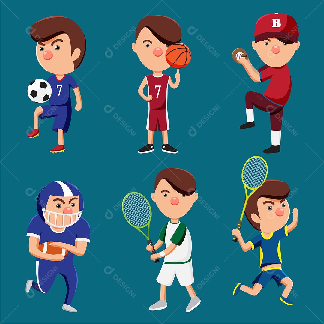 Conjunto de pacotes de mixagem de jogadores de atletas como futebol basquete Vetor EPS