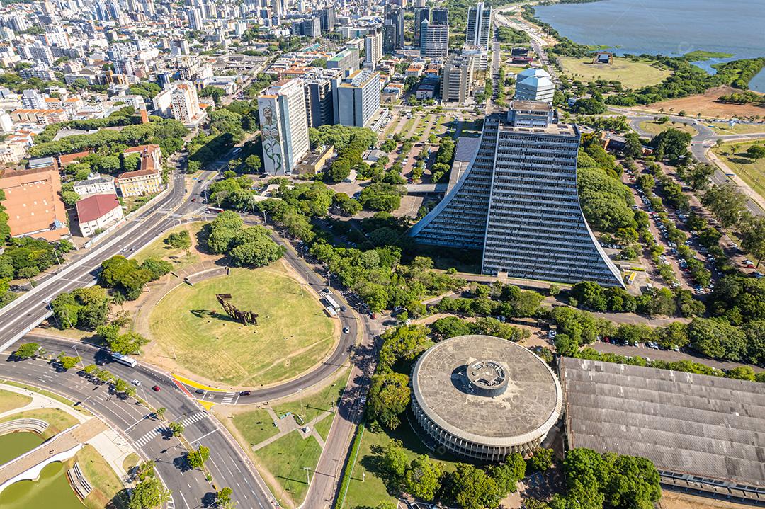 Vista aérea de Porto Alegre, RS, Brasil. Monumento dos Açores