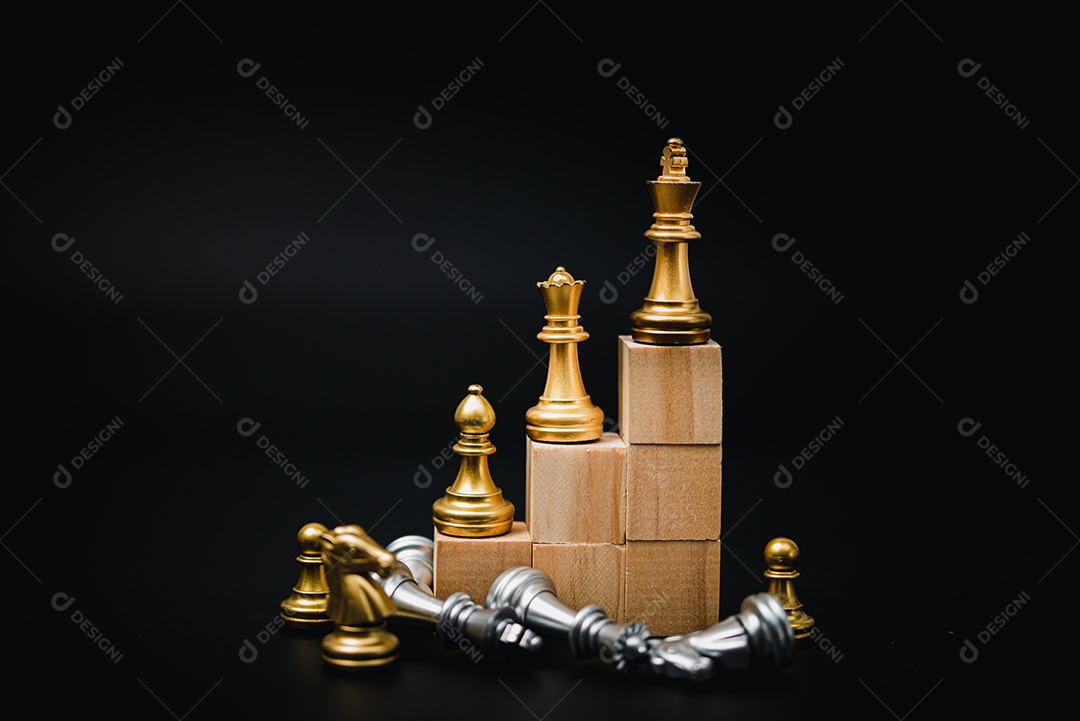 desenvolvimento e melhoria no crescimento corporativo e conceito de ideia de sucesso profissional do líder empresarial ou empresário. Xadrez no cubo de madeira.
