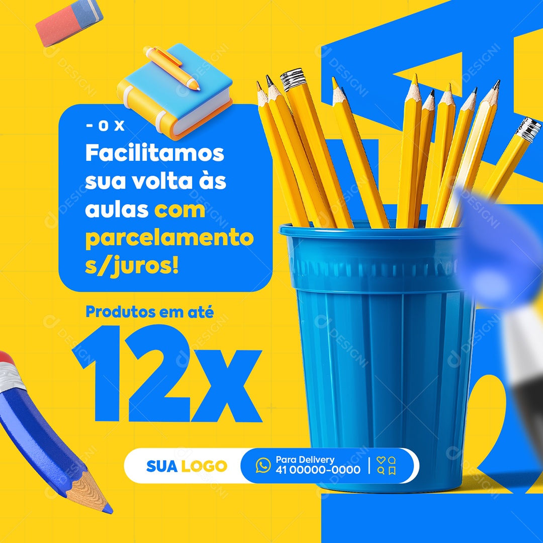 Papelaria Vola às Aulas Parcelamento Sem Juros Social Media PSD Editável
