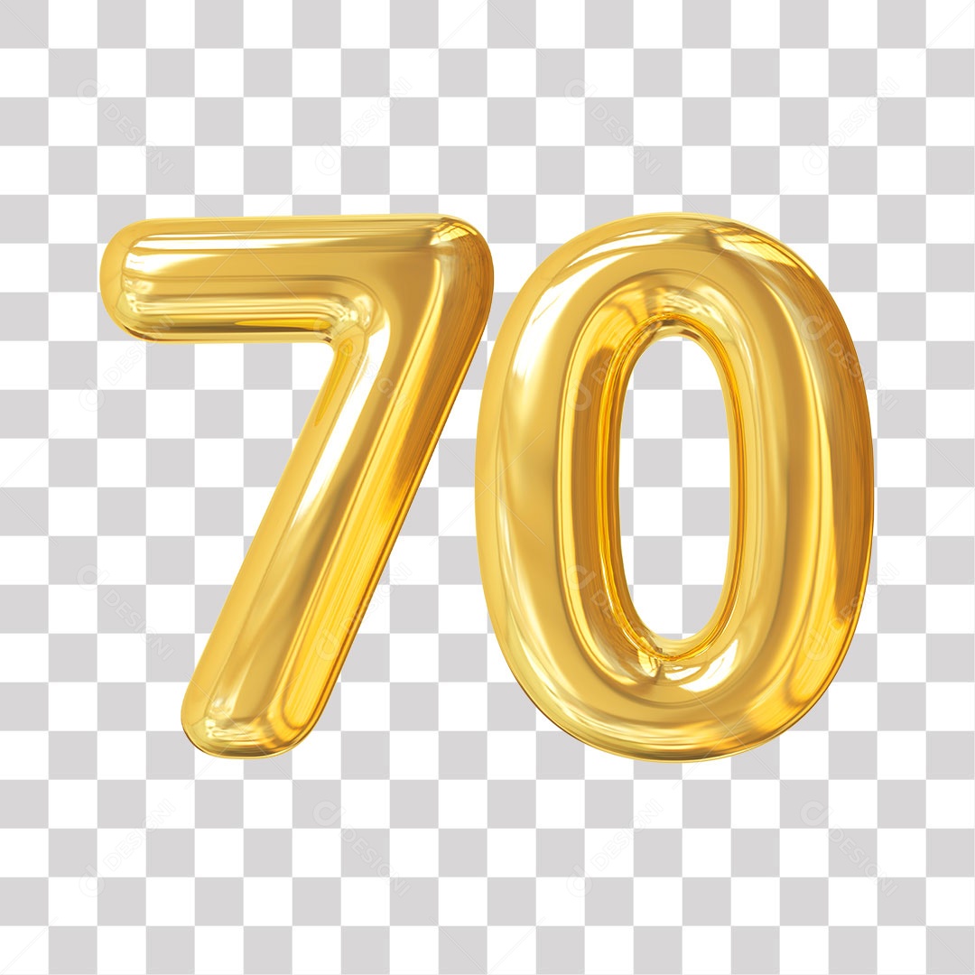 Elemento 3D Para Composição Número 70 Dourado PNG Transparente