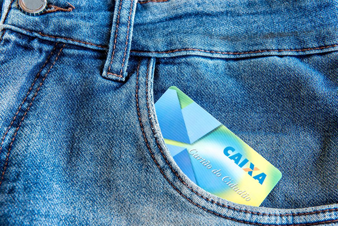Calça jeans com cartão de crédito no bolso
