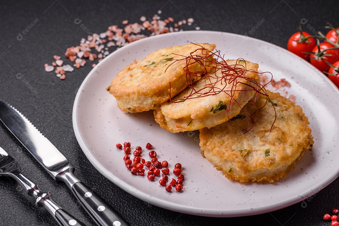 Deliciosas costeletas ou almôndegas fritas com sal, especiarias e e...