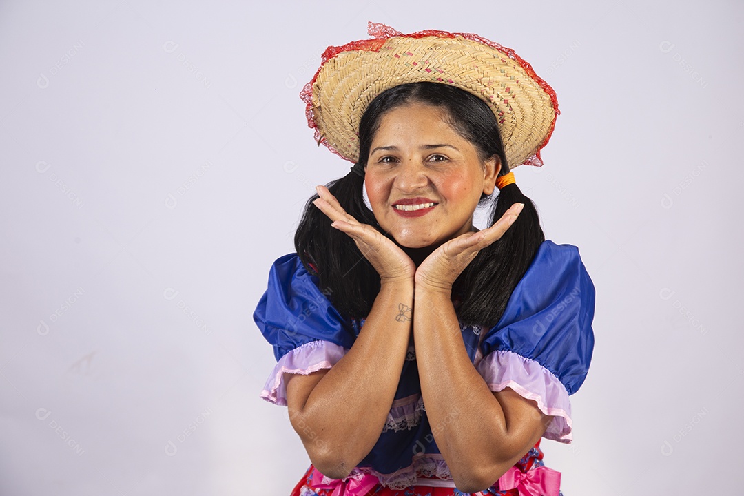 Linda mulher jovem roupas típicas de Festa Junina