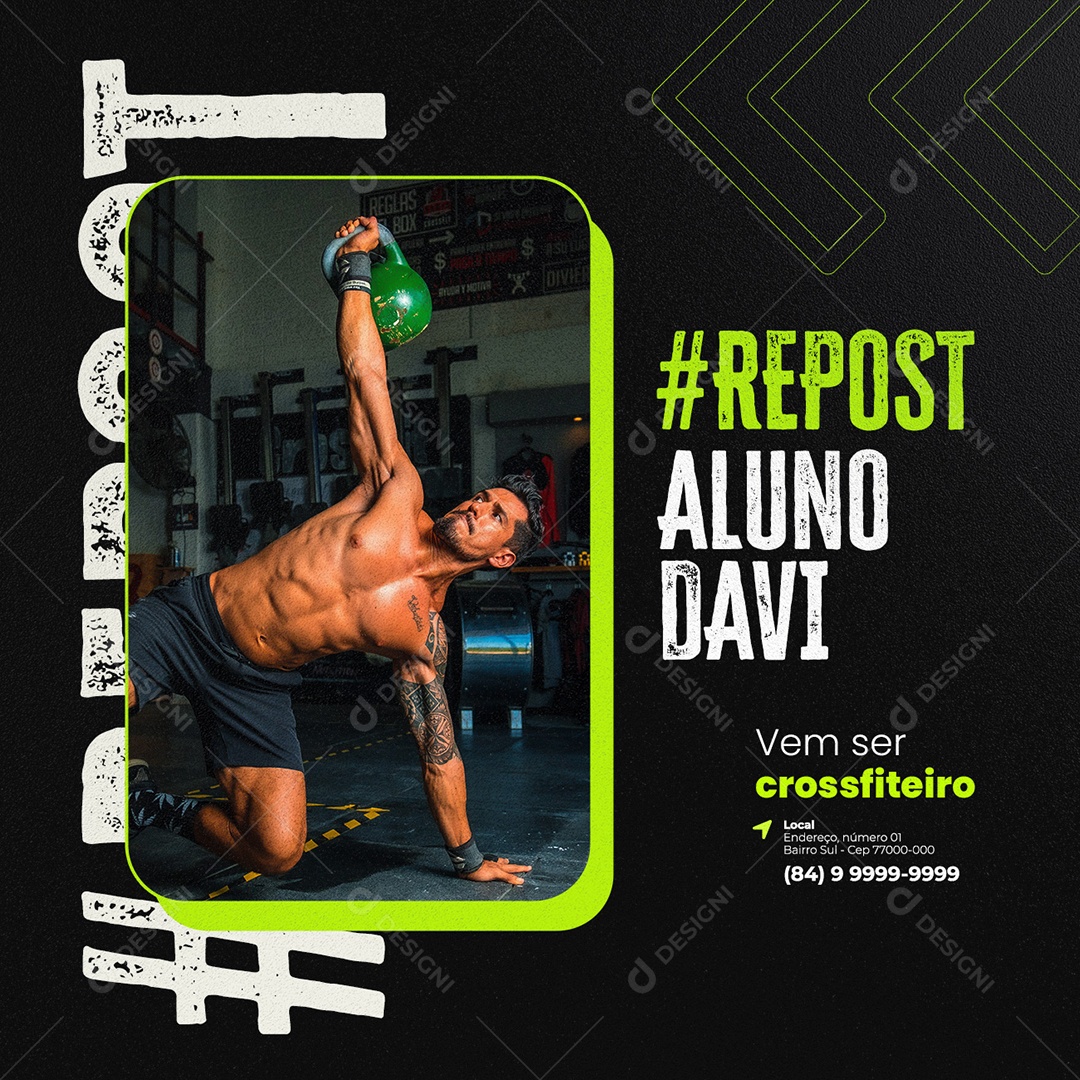 Repost Aluno Davi Vem ser Crossfiteiro Academia Crossfit Social Media PSD Editável