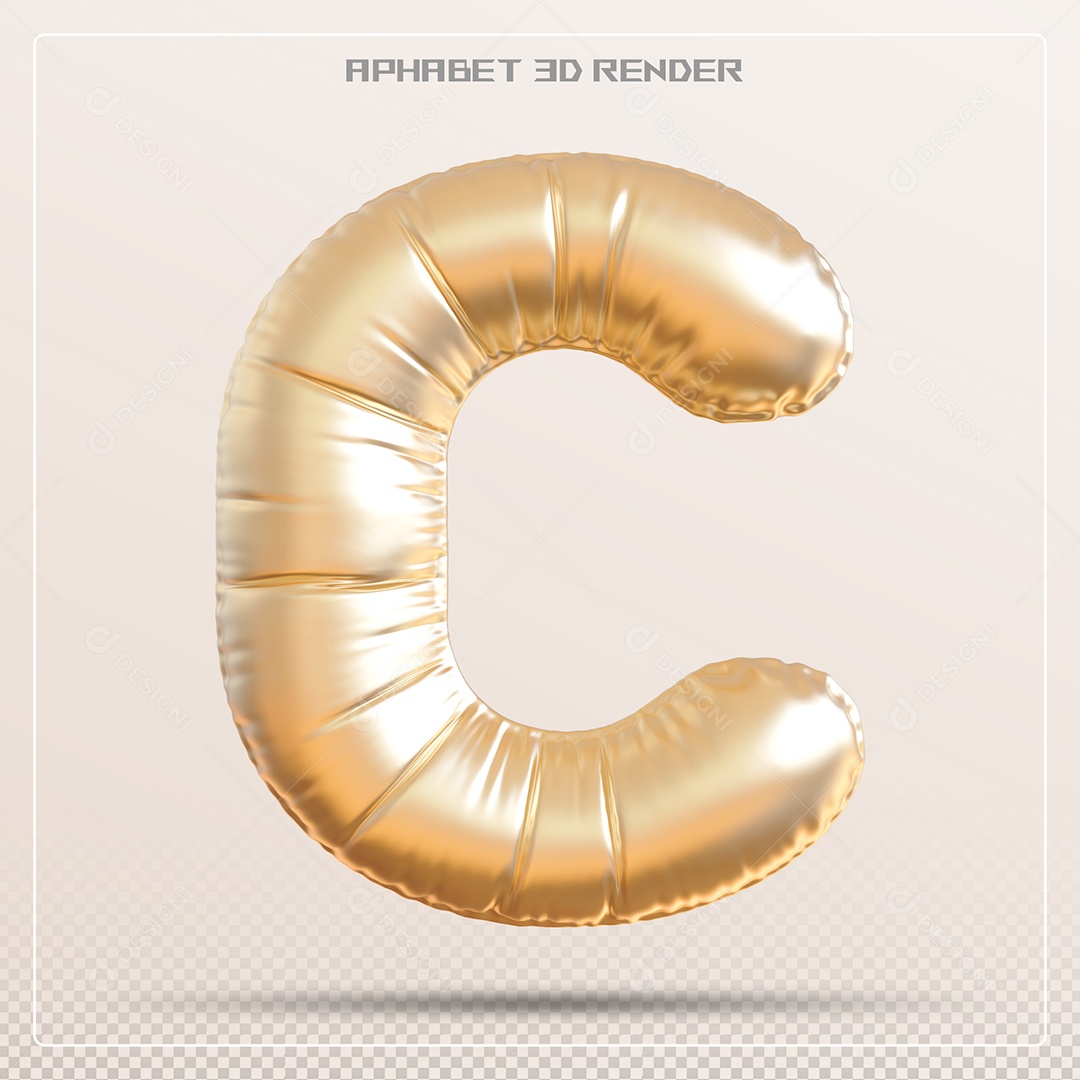 Balão Dourado Letra C Maiúscula Elemento 3D Para Composição PSD