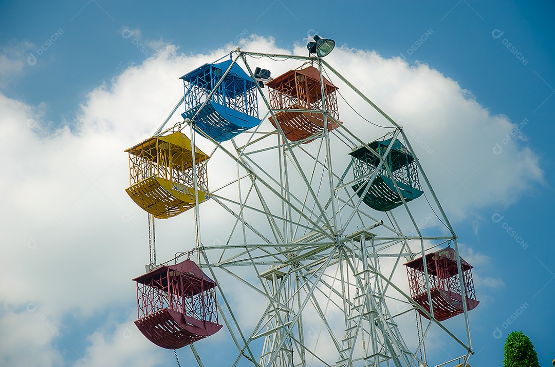 Roda gigante sobre o céu azul - efeito de filtro vintage.