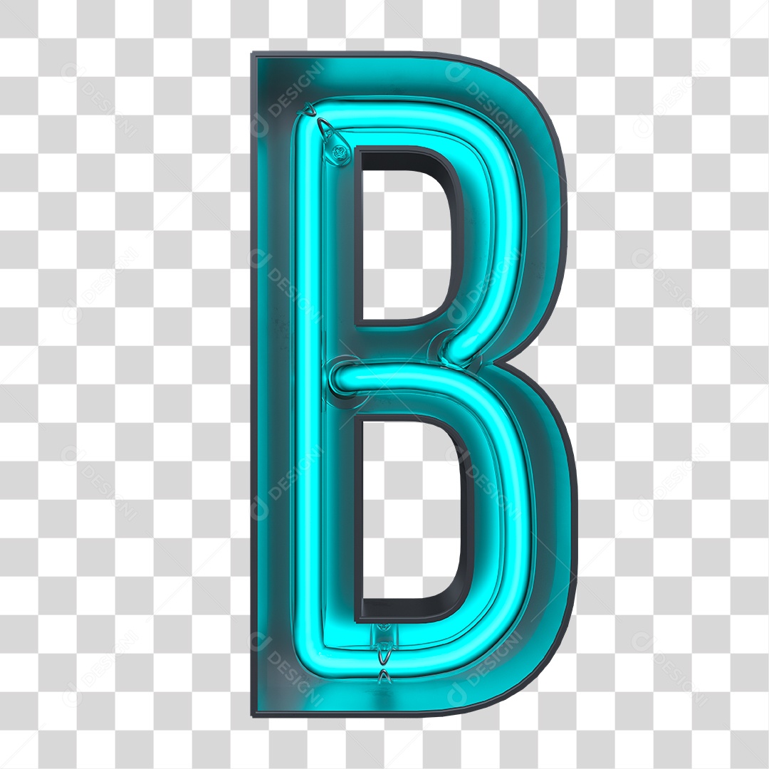 Elemento 3D Letra B Neon Azul PNG Transparente