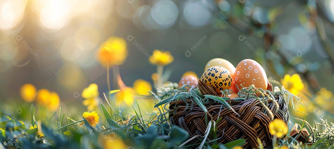Paisagem com cestinha e ovos pintados dentro