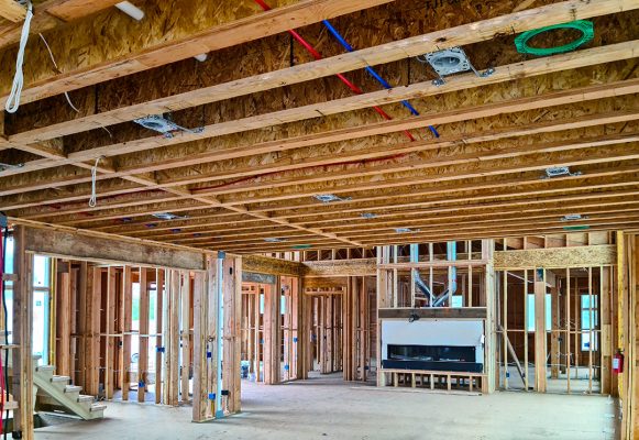 Construção de viga de cimento da base da cerca da casa perto da estrada de concreto
