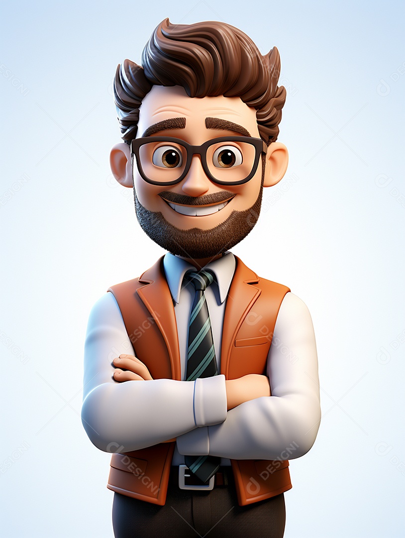 Homem de negócios 3d feliz cruzou os braços em 3d transparente