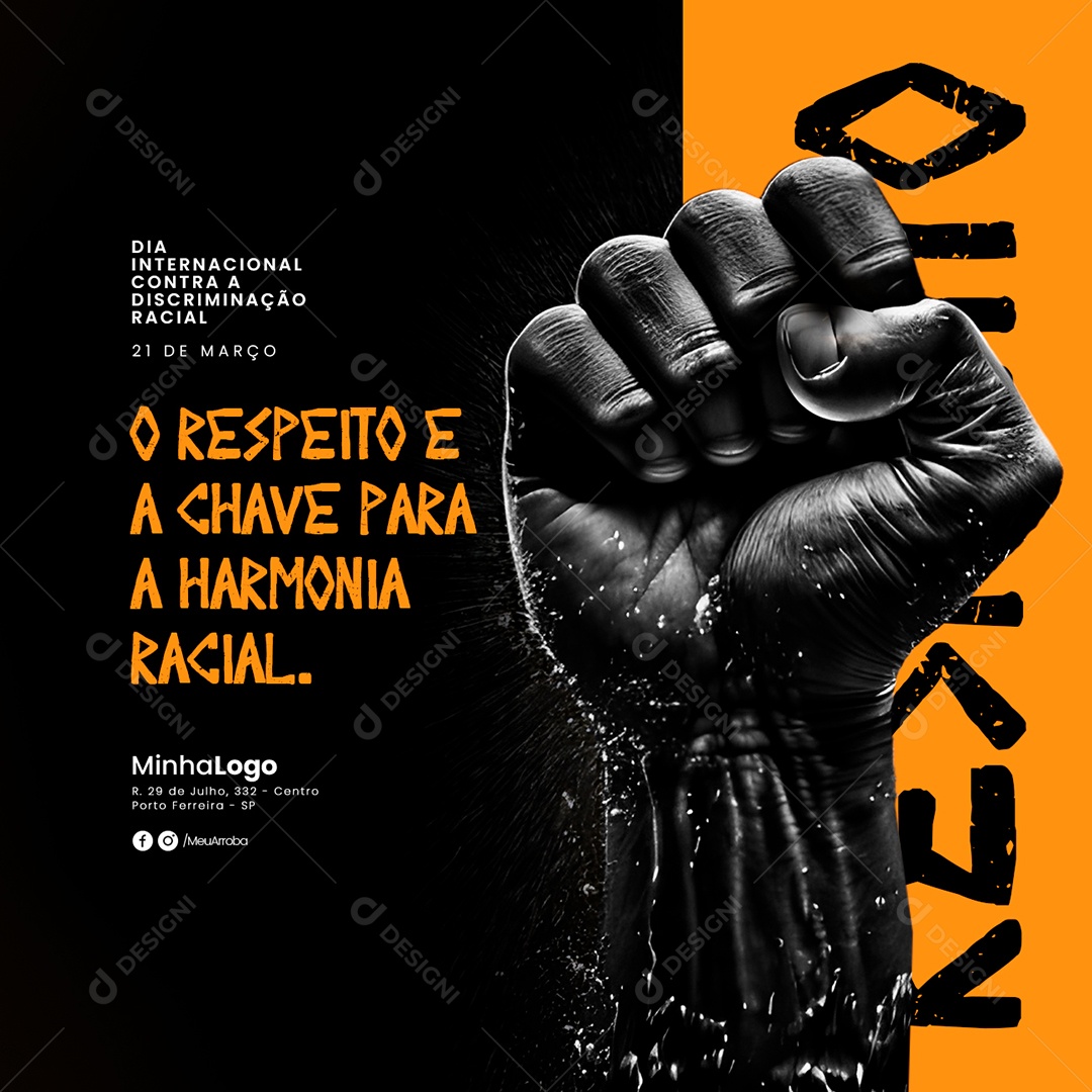 O Respeito é A Chave Para A Harmonia Racial Dia Internacional Contra a Discriminação Racial Social Media PSD Editável