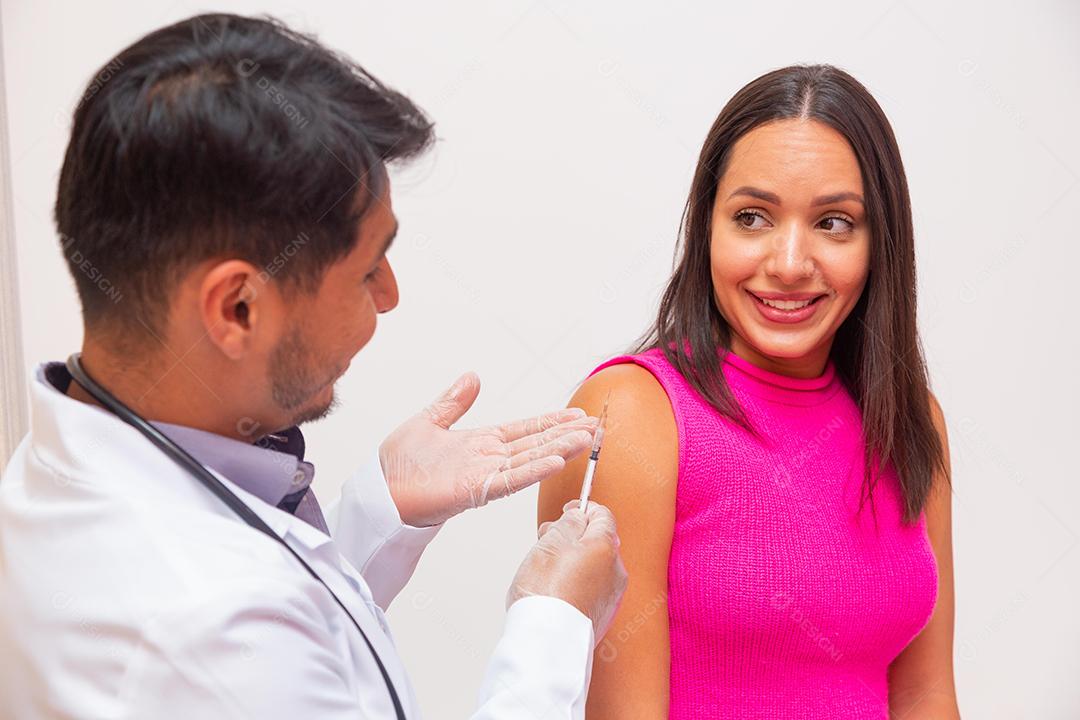 Médico aplicando a vacina contra covid 19 e a nova variante omicron