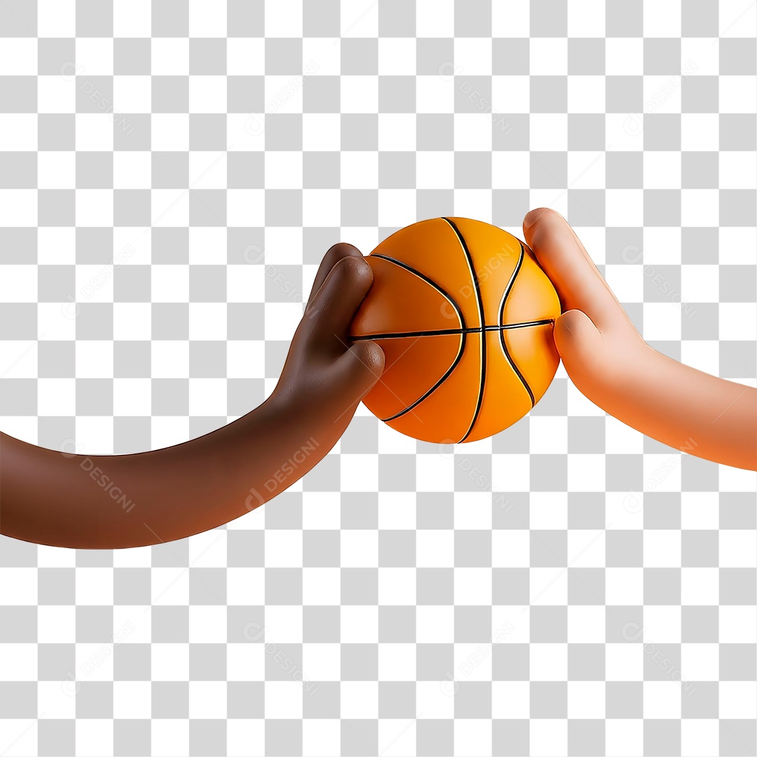 Mão Segurando Bola de Basquete Elemento 3D para Composição PNG Transparente