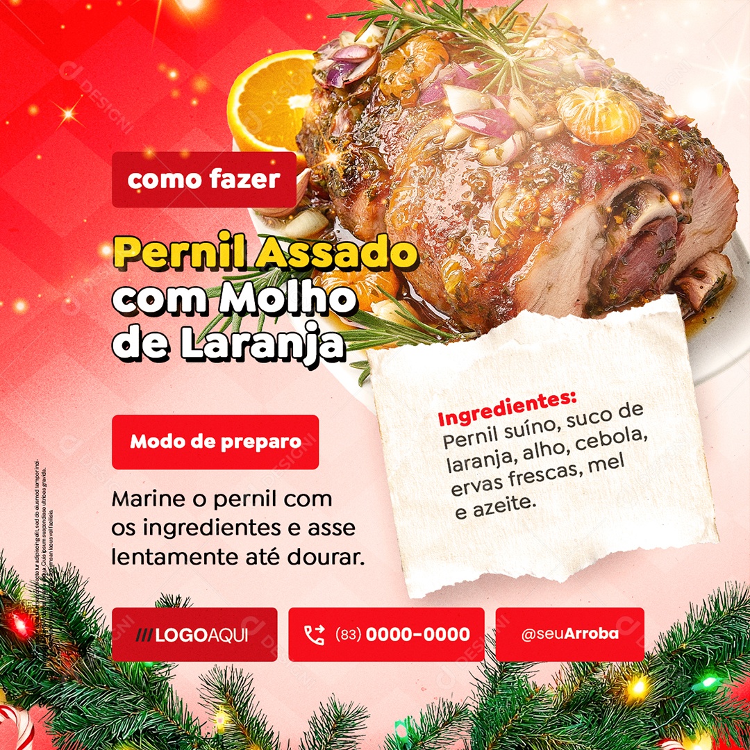 Comidas Natalinas Como Fazer Pernil Assado com Molho de Laranja Social Media PSD Editável