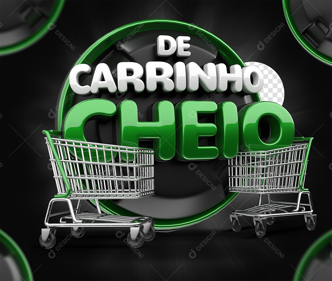 De Carrinho Cheio Selo 3D Verde preto e Branco para Composição PSD