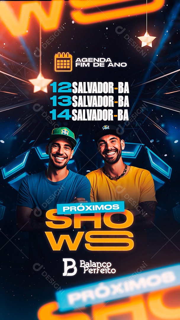 Story Flyer Ano Novo Próximos Shows Balanço Perfeito Agenda Fim de Ano Social Media PSD Editável