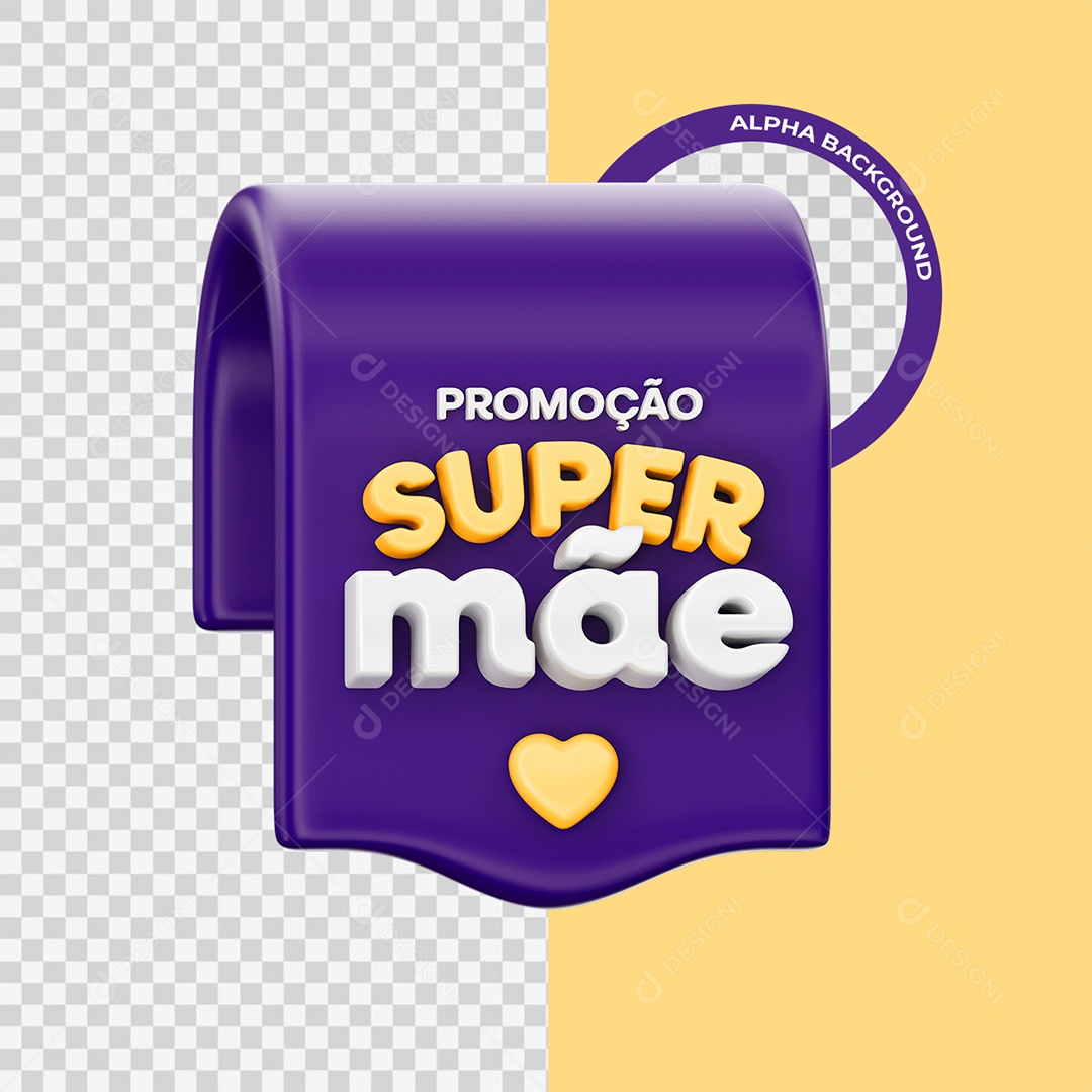 Promoção Super Mãe Selo 3D Roxo Amarelo e Branco para Composição PSD